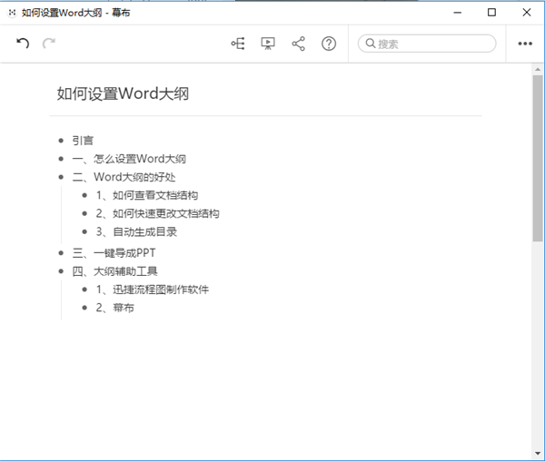 幕布也是一个很好的辅助工具,界面简单、干净,风格也是通用的黑白灰,可以让我们专注得思考大纲。