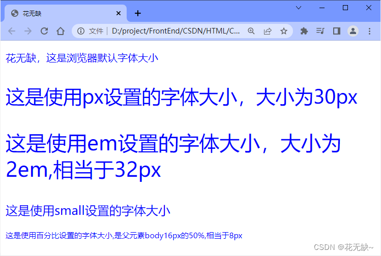 <p class="text1">花无缺,这是浏览器默认字体大小</p>