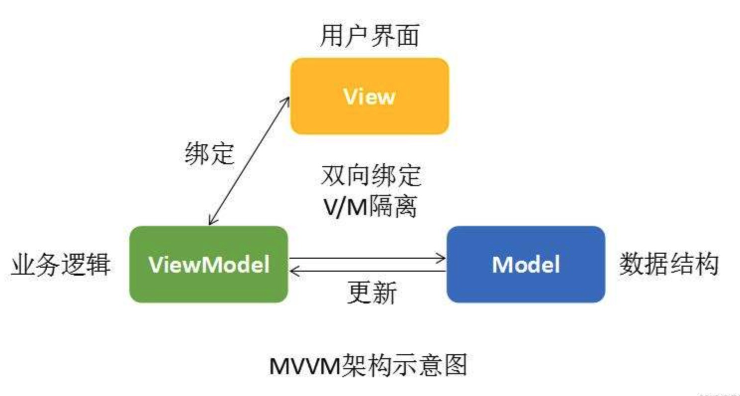 MVVM,是Model-View-ViewModel的简写,是M-V-VM三部分组成。它本质上就是MVC 的改进版。MVVM 就是将其中的View 的状态和行为抽象化,其中ViewModel将视图 UI 和业务逻辑分开,它可以取出 Model 的数据同时帮忙处理 View 中由于需要展示内容而涉及的业务逻辑。