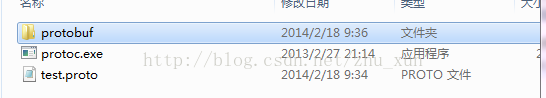 在proto.exe所在的目录下新建一个.proto文件test.proto: