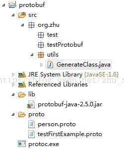 1.新建一个Java工程"protobuf",工程目录结构如下: