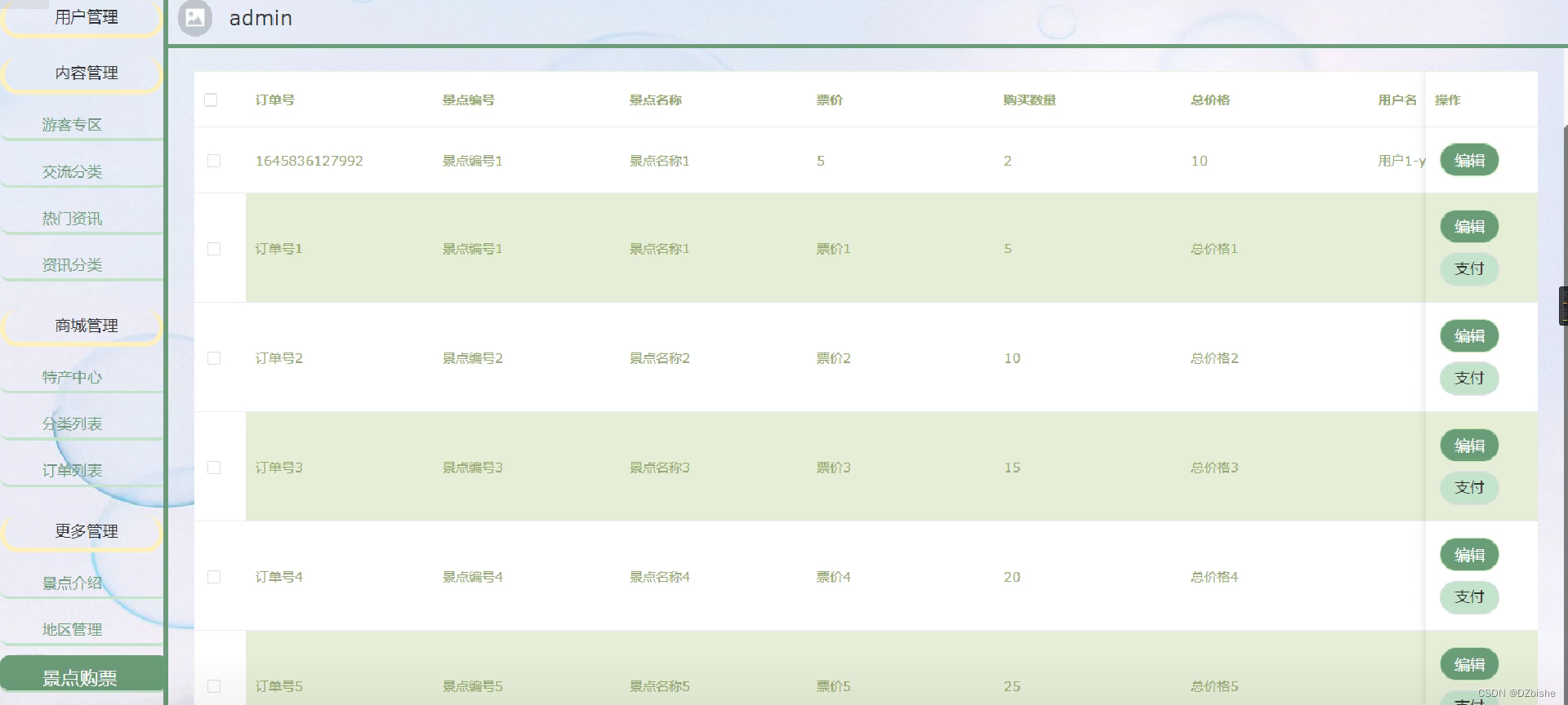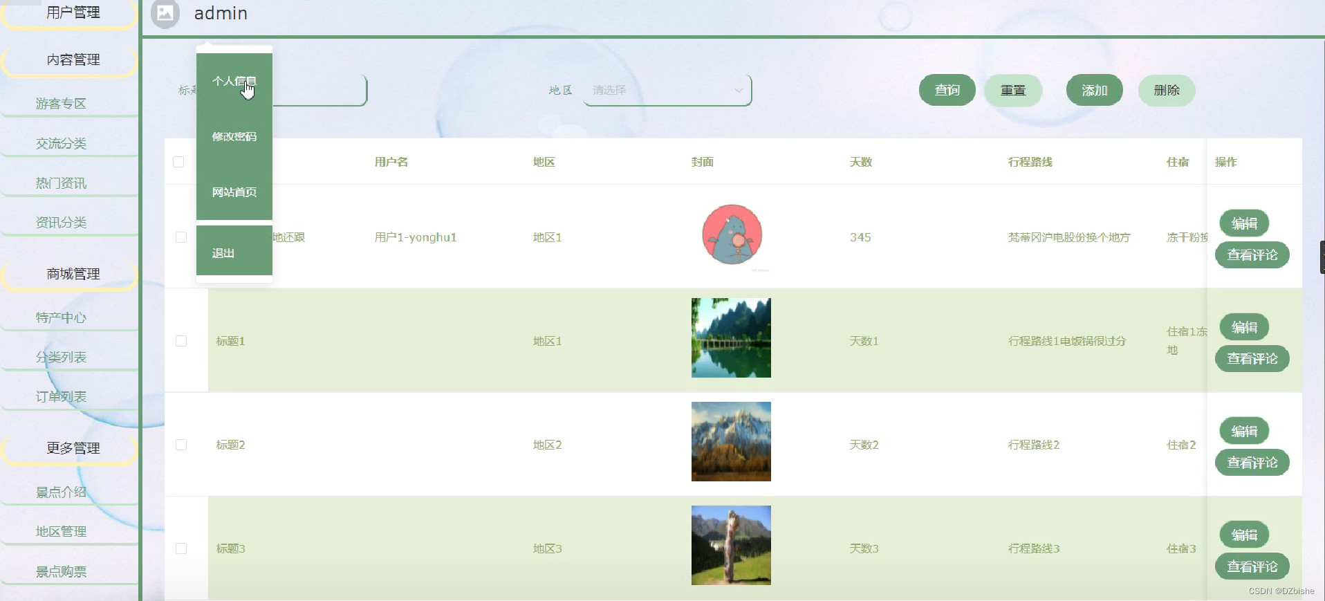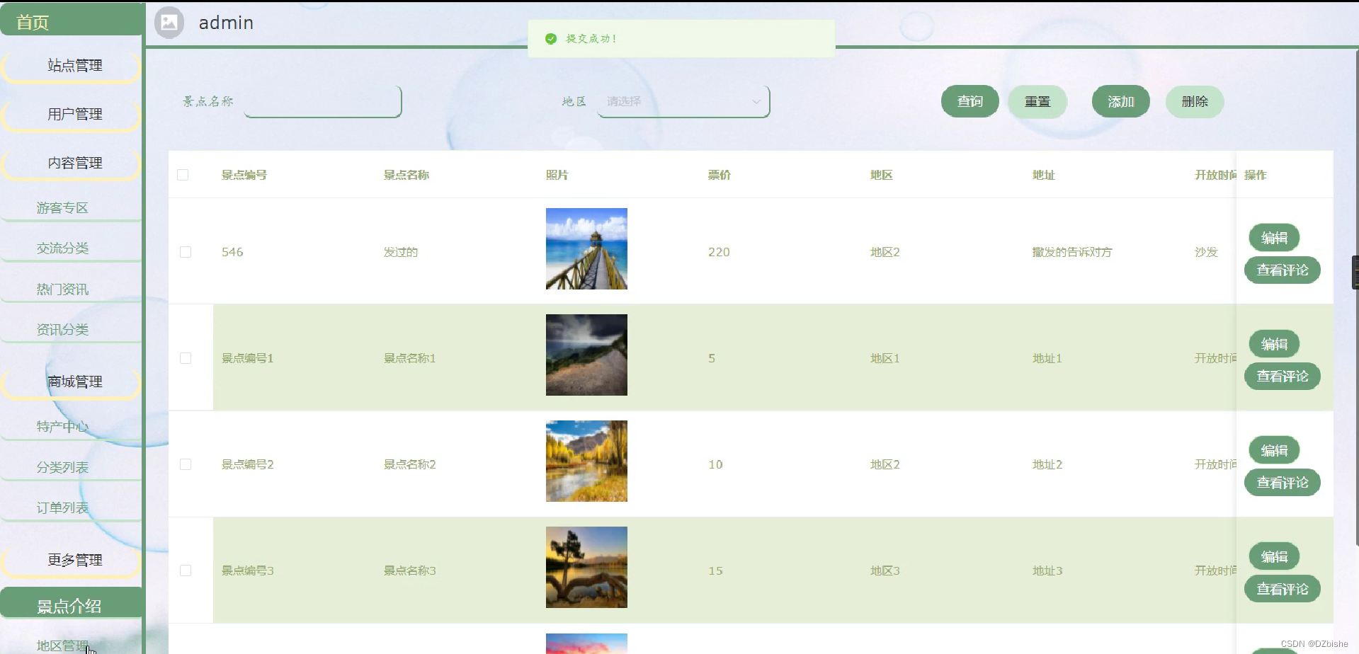 景点管理界面如下图所示。