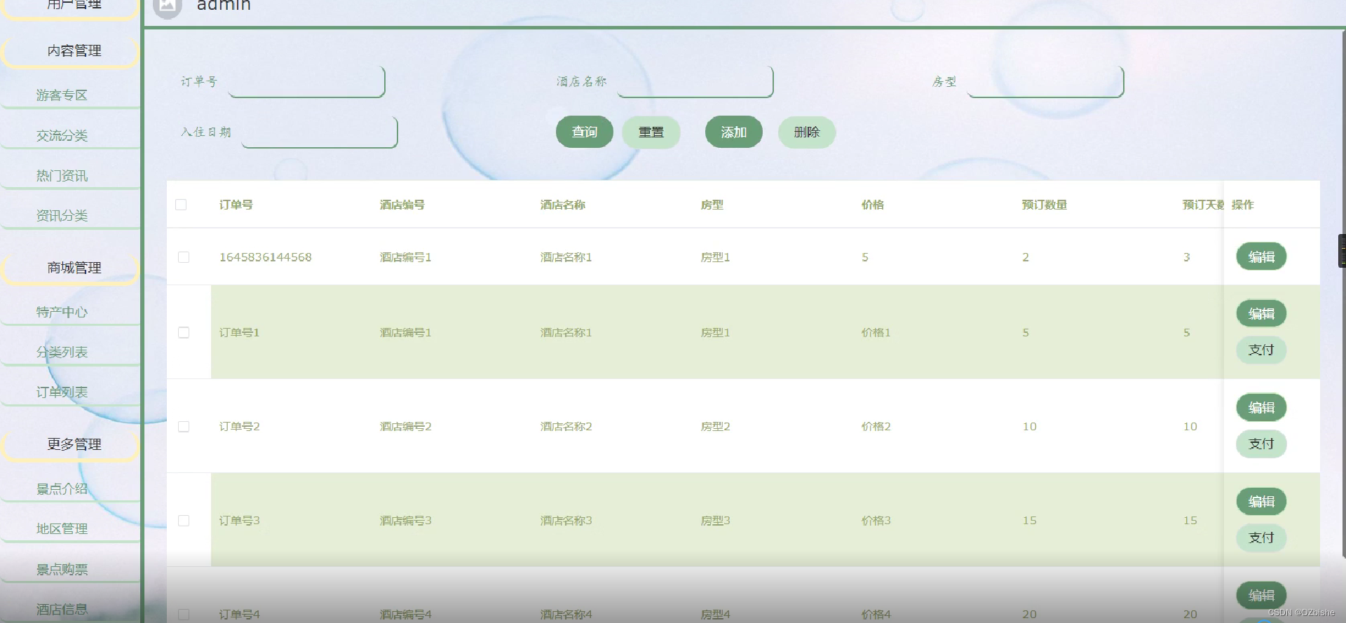 酒店预订管理界面如下图所示。
