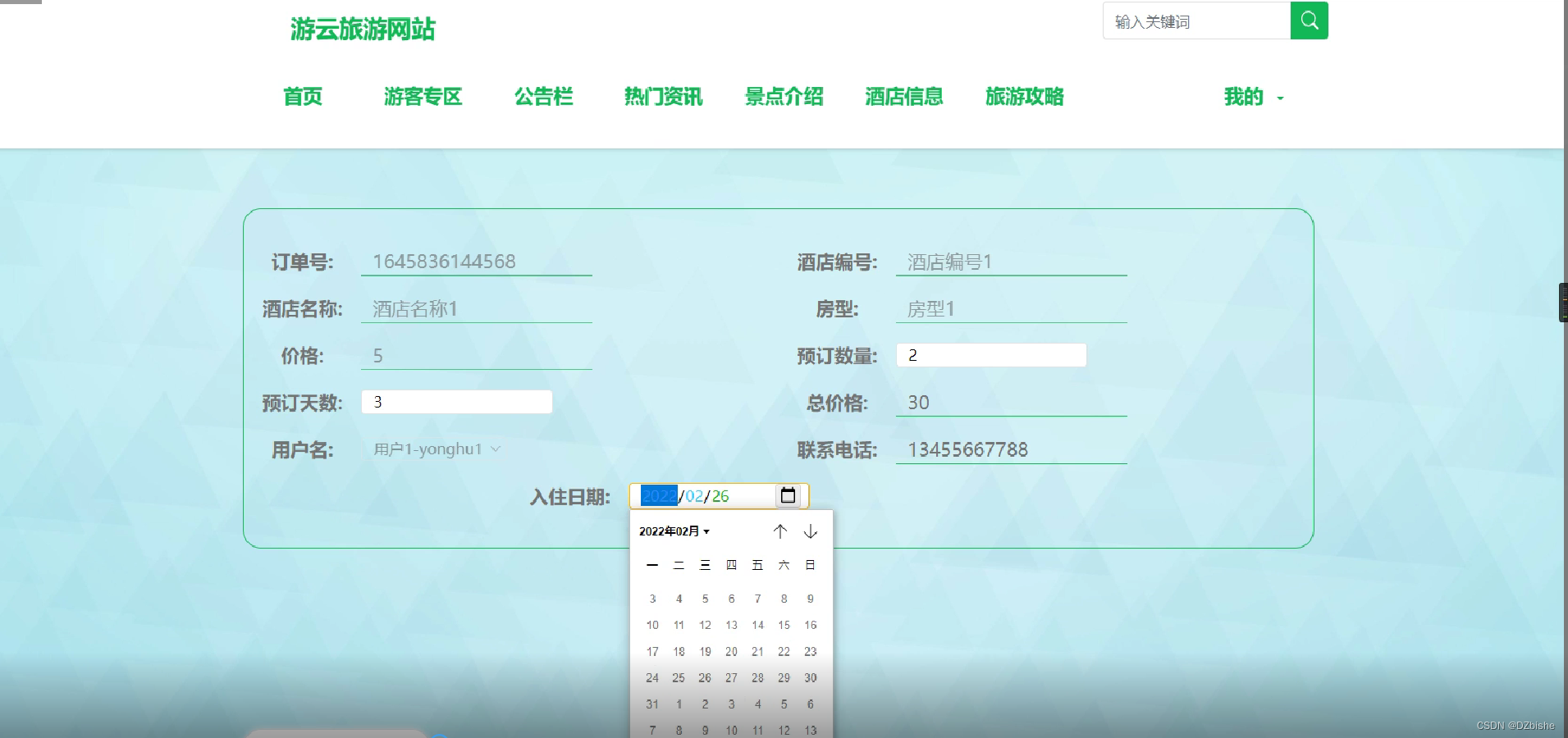 5.6 酒店预订模块的实现