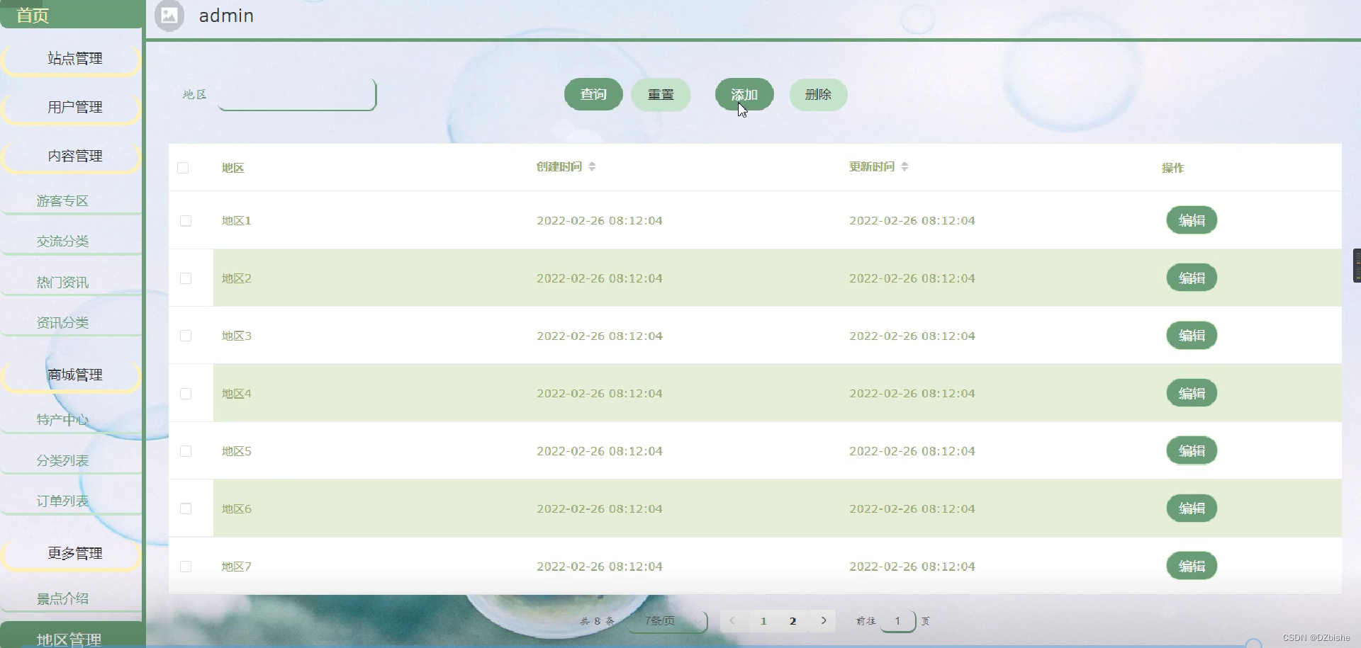 地区管理页面效果如下图所示。