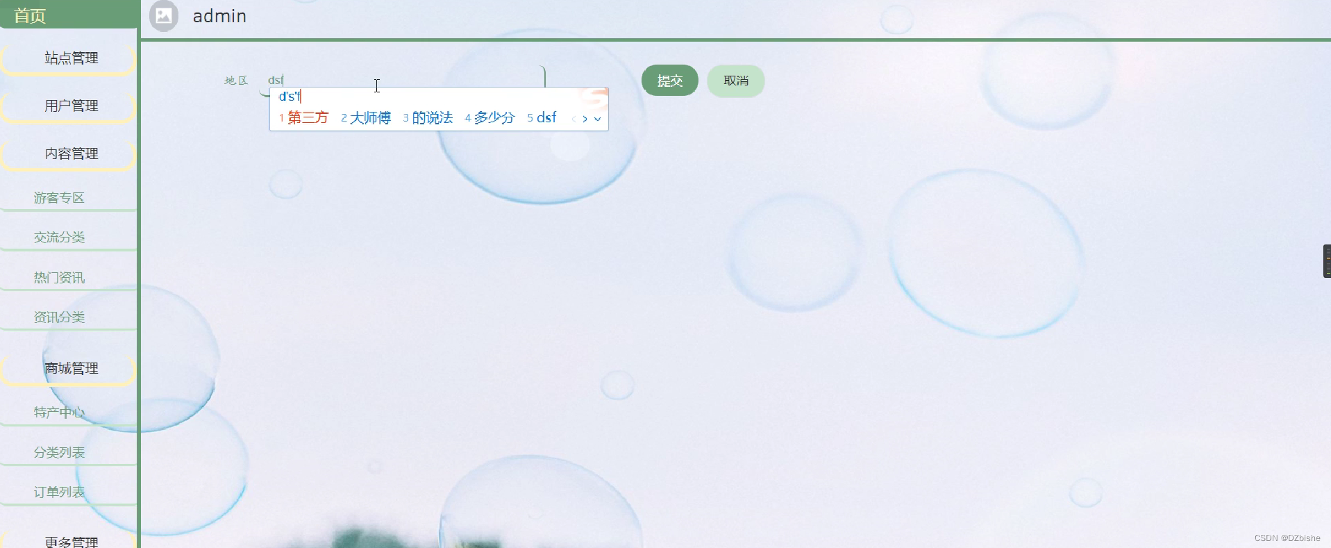 添加地区时,会给出数据填写的页面,该页面根据填写好的地区编号同样会事先发送Ajax请求查询编号是否已存在,数据填写好之后提交到后台,会调用相关服务在数据库中插入记录。