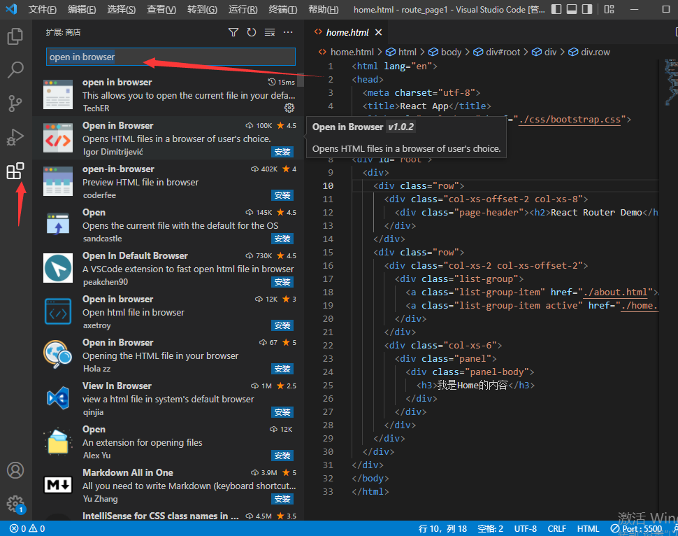 首先在打开VsCode,找到扩展商店 搜索open in browser插件