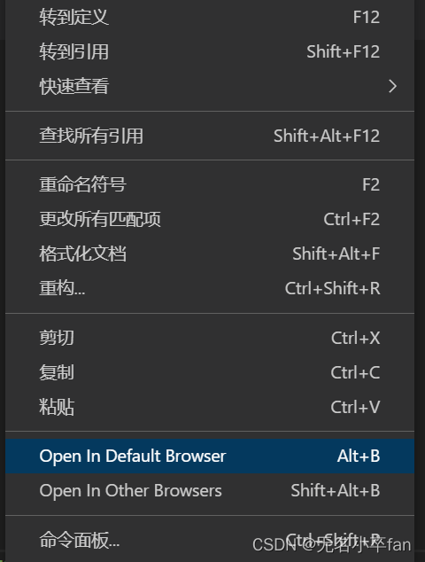 (3)点击右键,找到 Open In Default Browser 或者是 Open In Other Browser,点击打开(最好用谷歌浏览器打开),这样一个简单的网页就出来了。