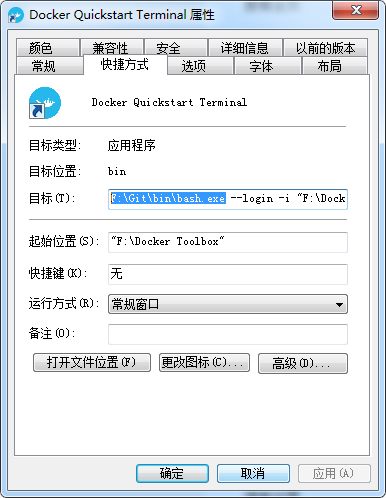 选择把gitbin目录下的bash.exe。或者在启动之前,右键快捷方式,在目标地址中添加F:Gitbinbash.exe