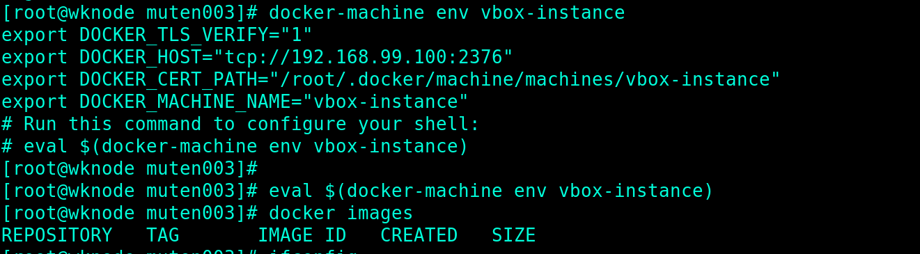 [root@wknode muten003]# eval $(docker-machine env vbox-instance)
