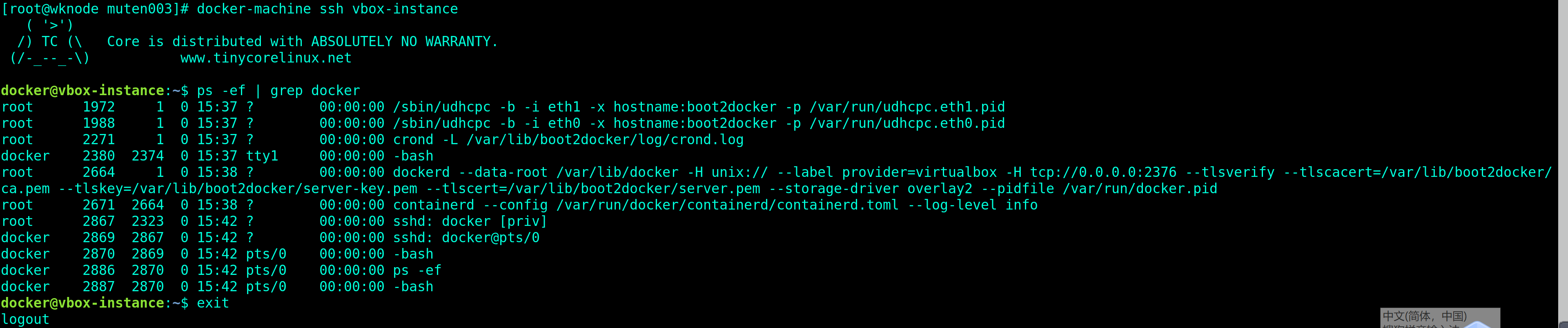 [root@wknode muten003]# docker-machine ssh vbox-instance