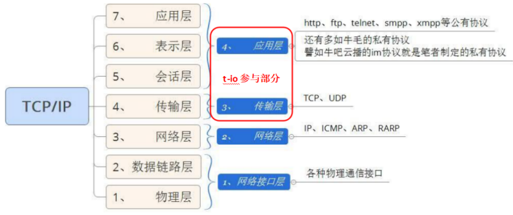 从以上图示可以知道tio完成的功能属于传输层和应用层之间的封装,以及和链接的建立。