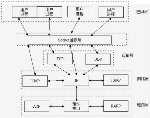 Socket是应用层与TCP/IP协议族通信的中间软件抽象层,它是一组接口。在设计模式中,Socket其实就是一个门面模式,它把复杂的TCP/IP协议族隐藏在Socket接口后面,对用户来说,一组简单的接口就是全部,让Socket去组织数据,以符合指定的协议。