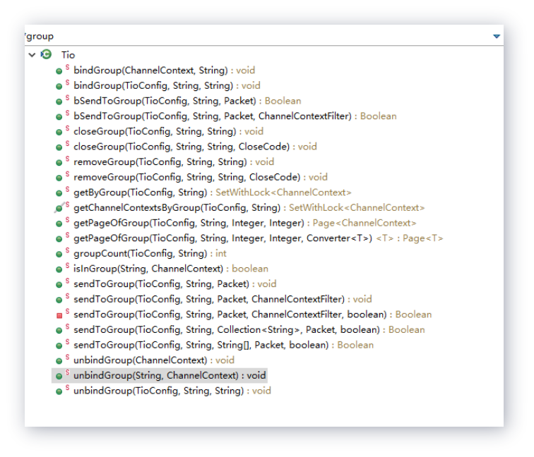 将多个TCP连接关联到一个或者多个群组(多对多),这样就能很容易实现上层业务的群组管理功能,可以实现一对一或者一对多的群业务。