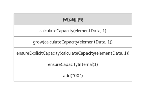 当i = 0时,此时是第一次向list中添加元素,elementData容量不足,需要加大elementData的容量。初始的list是一个空的Object[],依次调用add(), ensureCapacityInternal(), ensureExplicitCapacity(), grow(), calculateCapacity()方法。