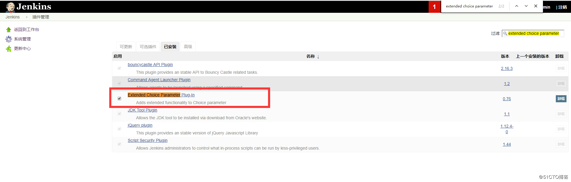 系统管理--->管理插件--->可选插件--->搜索extended choice parameter---->点击直接安装