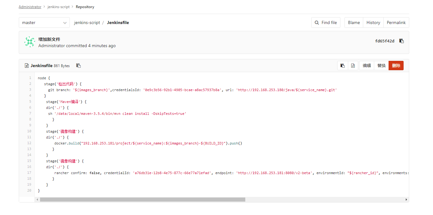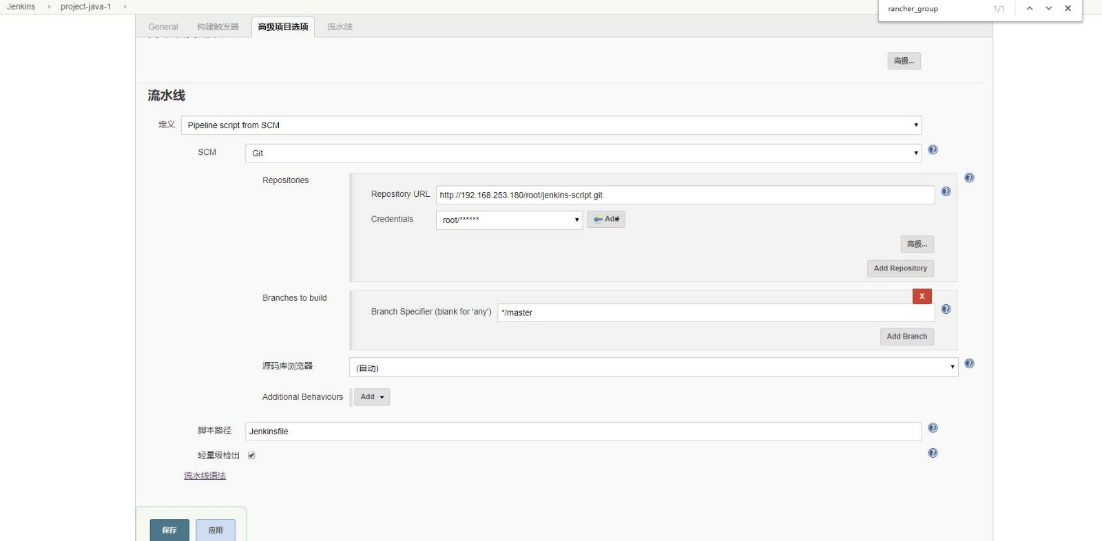 Repositories Jenkinsfile脚本所在分支