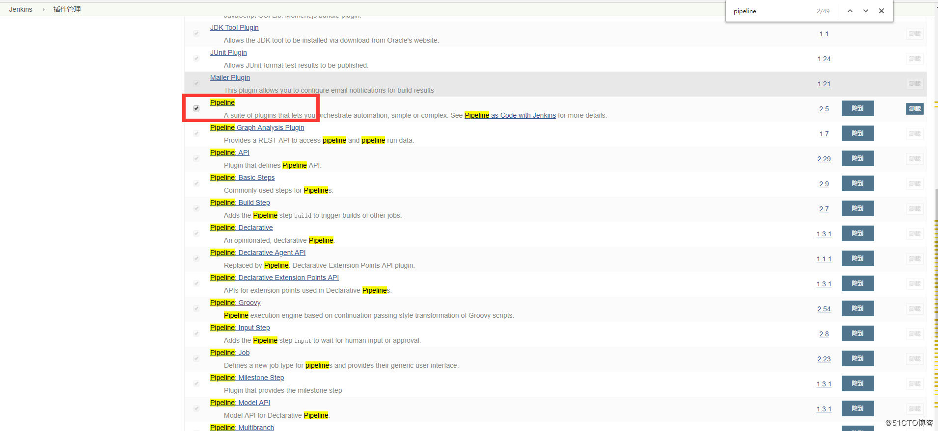系统管理--->管理插件--->可选插件--->搜索pipeline--->点击直接安装