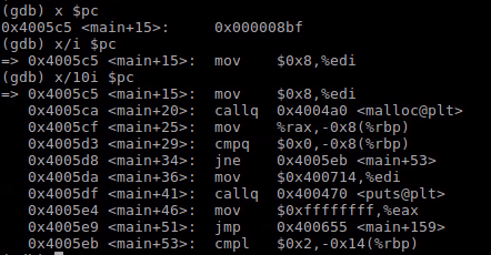 x $pc:显示程序指针内容