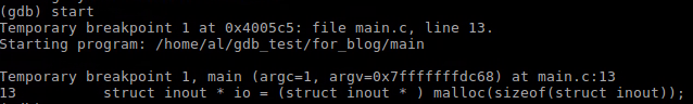 在gdb shell中source gdb.init,然后r执行命令,结果如下: