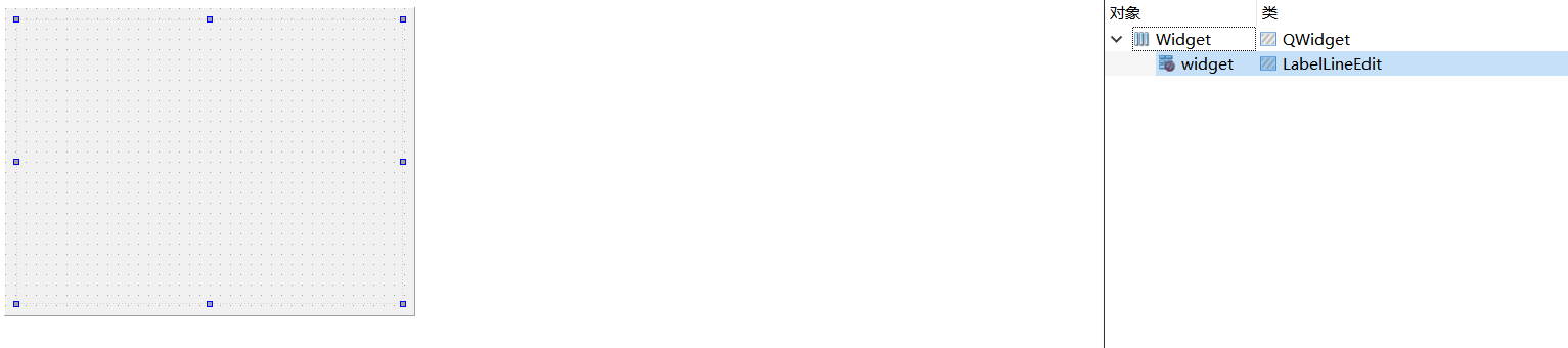 这样一个简单用来提升的类就做好了,那么该怎么使用呢,首先,在widget.ui添加一个widget控件,这是为啥呢,因为我们的类是继承QWidget的,所以必须用同样的来承载,添加完成之后,右键提升,填写好刚才的类名,点击添加