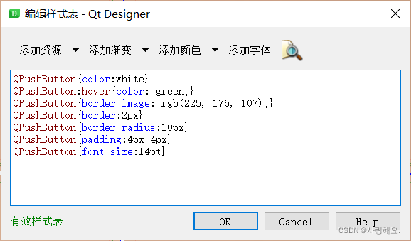c.各控件的背景通过stylesheet属性选择相应控件的颜色和按钮的形状,背景。关键词: