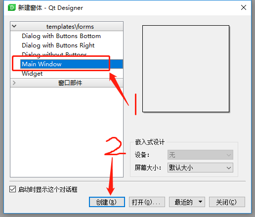 1、在Qt Designer中创建一个Main Window的编程界面。