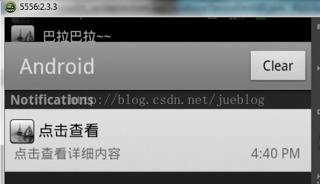 Notification notification = new Notification(R.drawable.icon, "巴拉巴拉~~", System.currentTimeMillis());