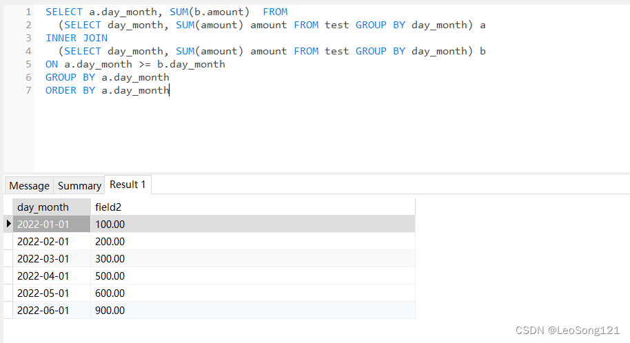 现有表记录了每月的金额,如何统计每月金额等于之前的所有月份金额累计: