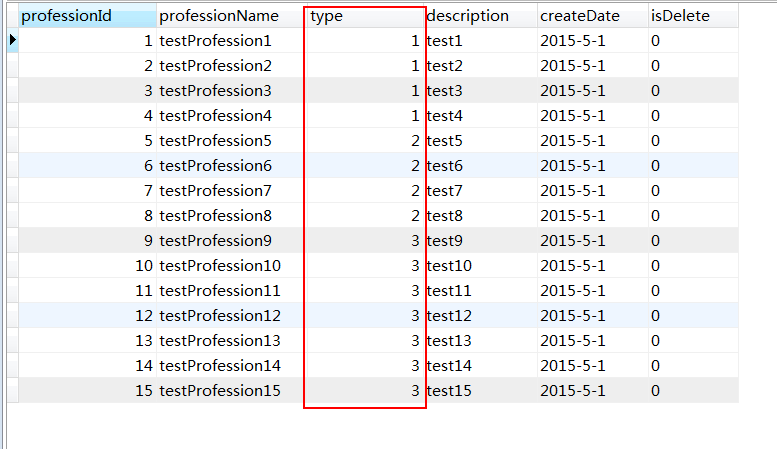 比如有一个 profession (职业表),按它的分类,统计每类的数量: