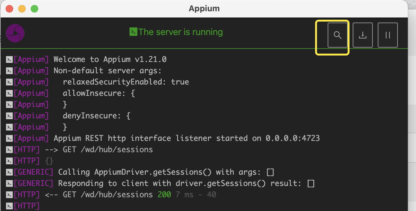 - Appium-Server的图形界面。可以设置选项、启动/停止服务器、查看日志等功能;