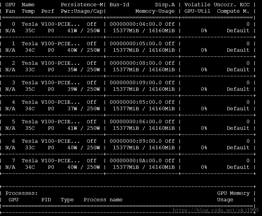 有个很奇怪的问题,没有进程在跑,但是显存占用Memory-Usage几乎被用完了。想通过kill掉进程也没进程可以kill.用命令fuser -v /dev/nvidia*找运行的进程,也没找到任何进程。