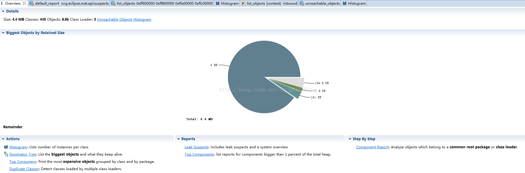 1.在Eclipse安装MAT后,打开.hprof文件,主要分析action区域