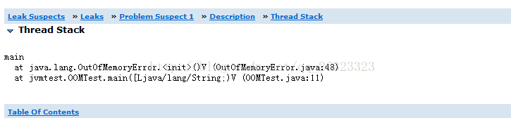 5.直接定位代码段可以查看Reports->Leak Suspects->Problem Suspect中See stacktrace