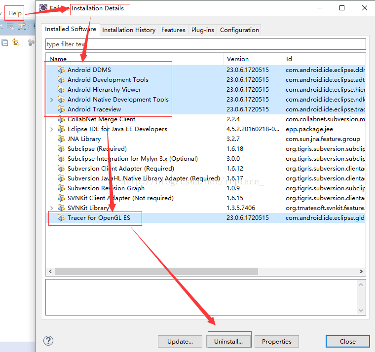 在eclipse的安装文件夹下Features文件夹中删除以com.android开头的文件夹