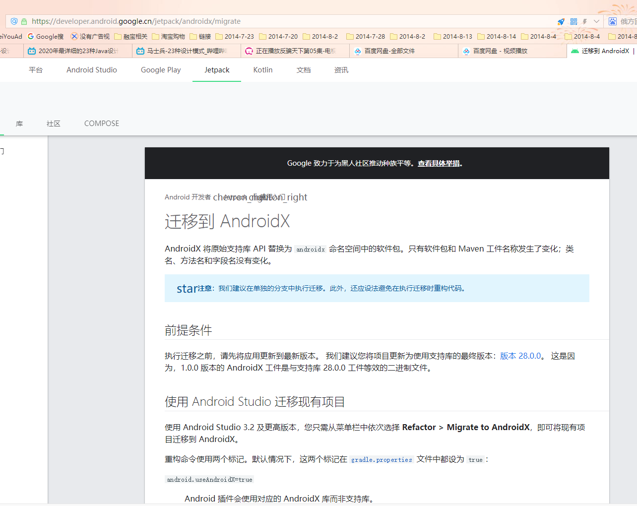 下面是Google官方Support库迁移AndroidX说明:https://developer.android.google.cn/jetpack/androidx/migrate
