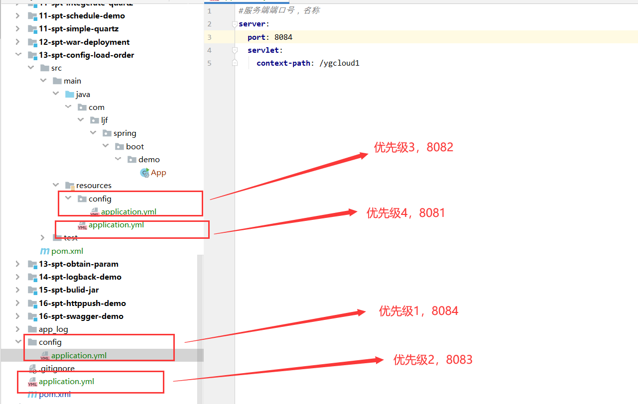 结论:先加载跟目录下config下的application的配置文件,显示端口号为8084