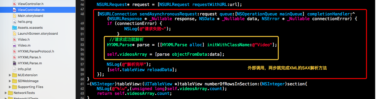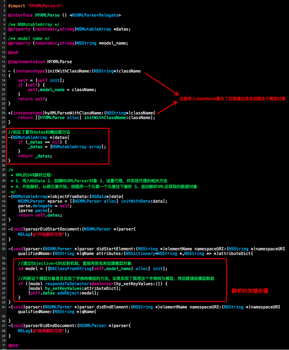 当然也可以直接到github上下载和使用笔者对NSXMLParser封装好的可重复利用的非常简单的XML解析工具类:HYXMLParser。