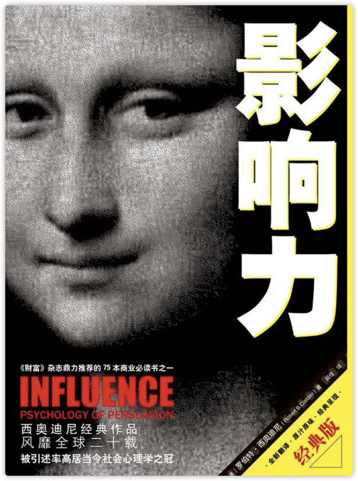 - 推荐理由:“不管是在生活还是工作当中,影响力的作用无处不在。合理地运用影响力,能够有效地促成合作,减少冲突,从而顺利高效地达到目标。《影响力》总结了打造影响力的几个关键因素,如互惠、承诺与一致、权威、短缺、喜好等。如果你在思索如何提升自己的技术影响力、团队影响力、组织影响力,那么,在本书中可能有你想要的答案。”