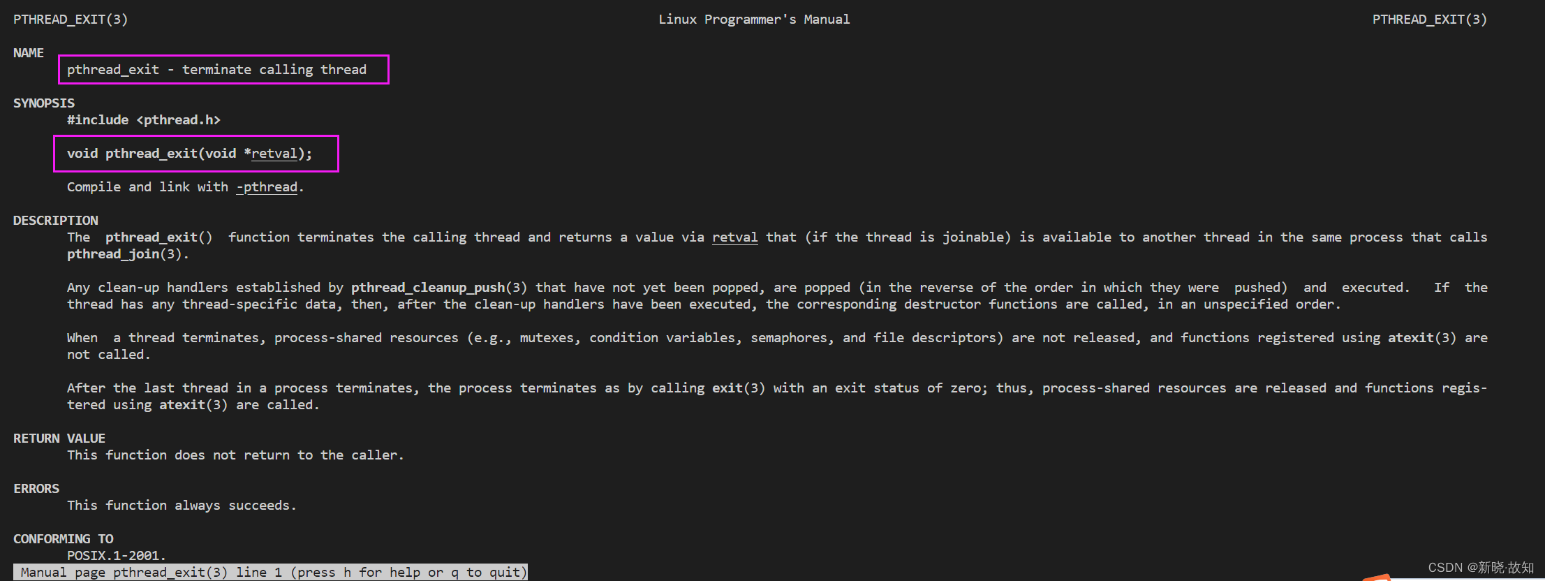 - pthreads同样也提供了线程内的errno变量,以支持其它使用errno的代码。对于pthreads函数的错误,建议通过返回值业判定,因为读取返回值要比读取线程内的errno变量的开销更小