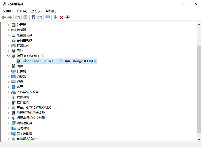 找到串口设备CP210x,我电脑的端口映射是COM3。