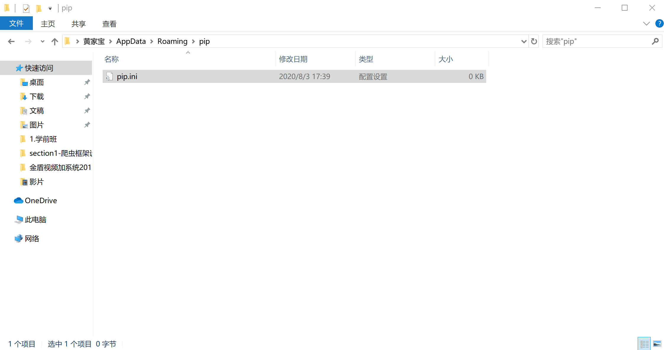 然后在底下新建 pip 文件夹,然后到 pip 文件夹里面去新建个 pip.ini ,然后再里面输入内容