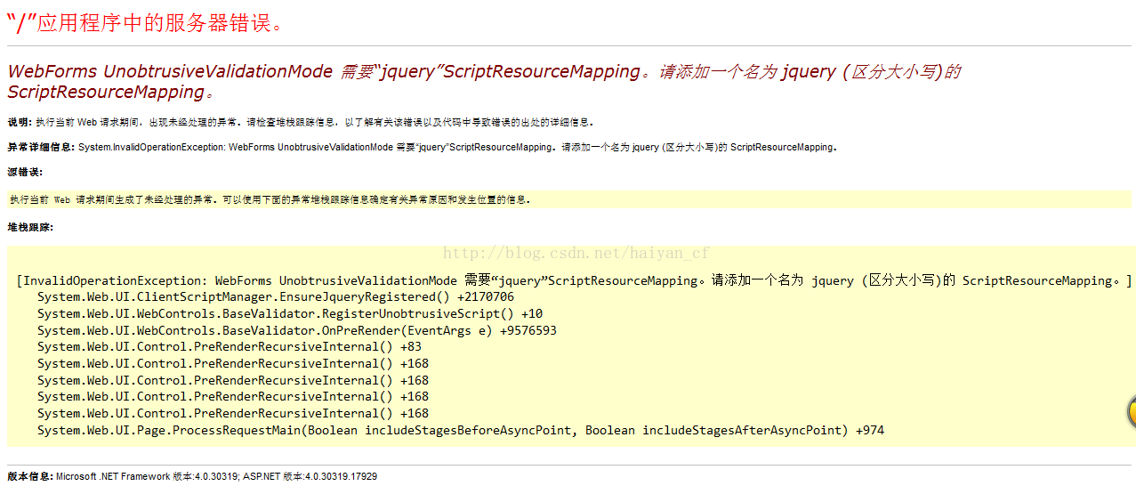 曹建新—WebFroms UnobstrusiveValidationMode 需要“juqry”ScriptResourceMapping.