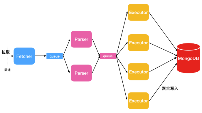 FullDocumentParser进行控制。其主要就是从队列中读取数据,并解析成bson结构。parser解析后,数据按条写入executor的队列。parser线程单独独立出来主要是出于解析比较耗CPU资源考虑。 - executor。executor也可以启动多个,默认目前是4个,用户可以通过