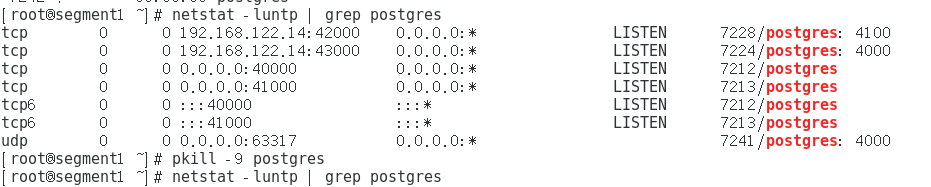 3.1.1 杀死其中一个segment的postgres进程