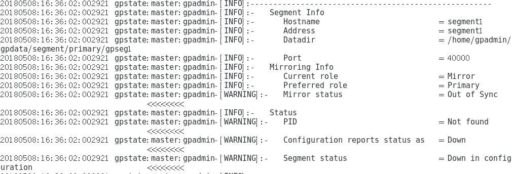 查看所有节点是否恢复正常:gpstate -f 或 gpstate -s
