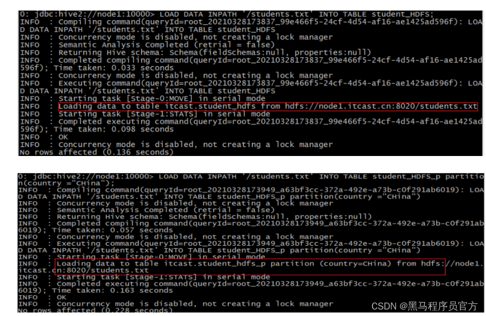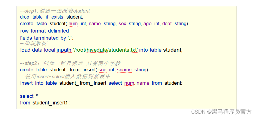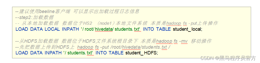- 但是, Hive官方推荐使用Load命令将数据加载到表中。