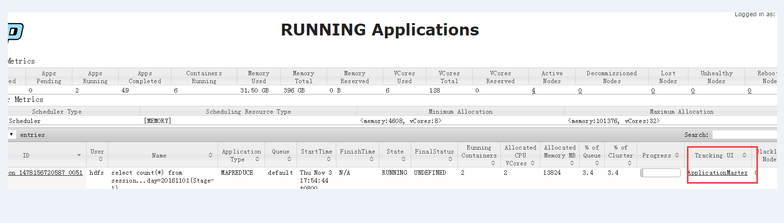 1:点开hadoop yarn的监控界面 http://ip:8088/(默认的)