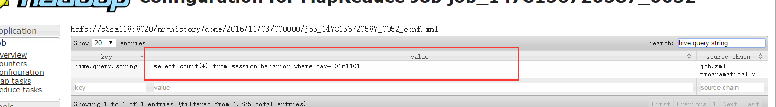 以上就是体贴月饼最近收集整理的关于怎样在Hadoop中查看MR执行的SQL语句的全部内容,更多相关怎样在Hadoop中查看MR执行内容请搜索靠谱客的其他文章。