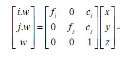 在针孔摄像机模型里,从三维世界中一点(x,y,z)到图像平面中一点(i,j)的映射如下: